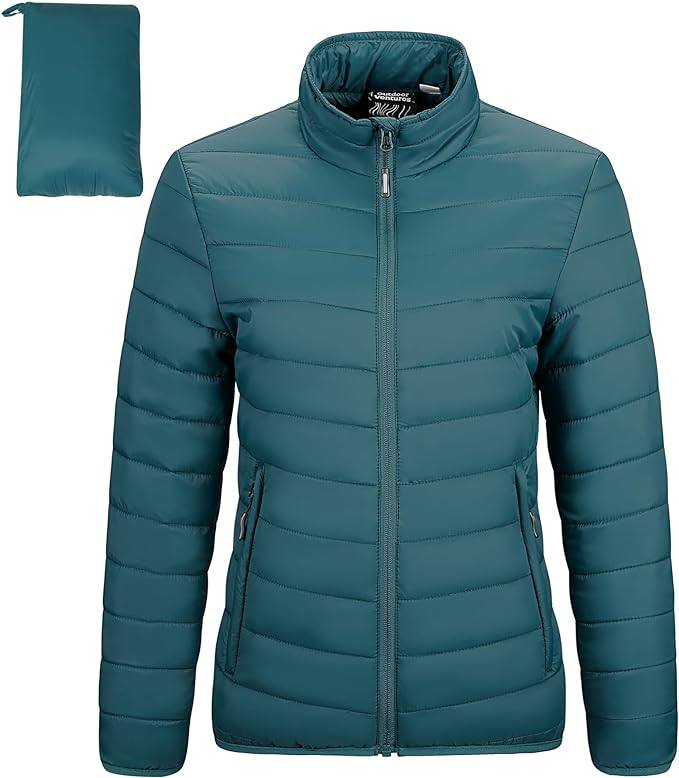 If you need something a little warmer, I love this Outdoor Ventures Women’s Packable Lightweight Puffer Jacket which also packs down into its own compact travel bag and comes in a gorgeous collection of colours.
