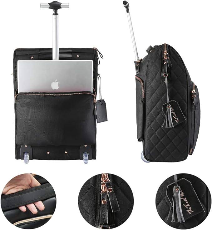 Not only is the suitcase excellent for keeping our travel packing essentials to a minimum, but it’s also beautifully designed, with a black finish and stunning rose gold accents.