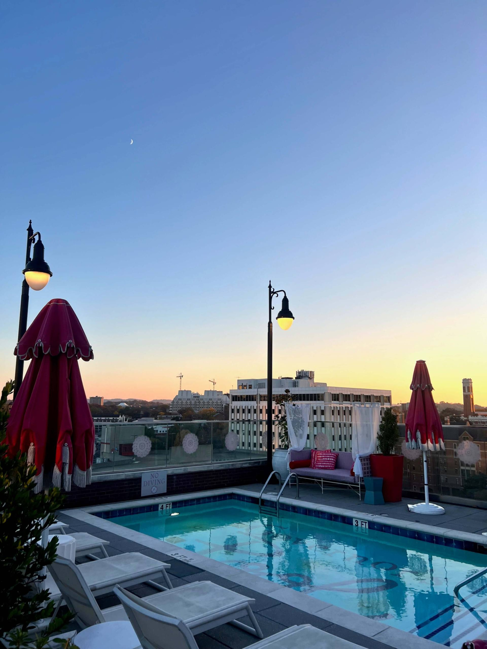 If you still have some energy, head to White Limozeen, the rooftop bar of The Graduate Nashville, for some late afternoon or early evening drinks. This place was recommended to us by a local and it was an amazing tip which we wouldn’t have found otherwise. The rooftop is 100% Instagrammable and visiting at dusk gives you the best chances for a spectacular sunset over the city. Drinks aren’t cheap but they’re delicious and you’re kind of happy to pay for the surroundings. The Graduate Nashville would also be an awesome place to stay in the city.