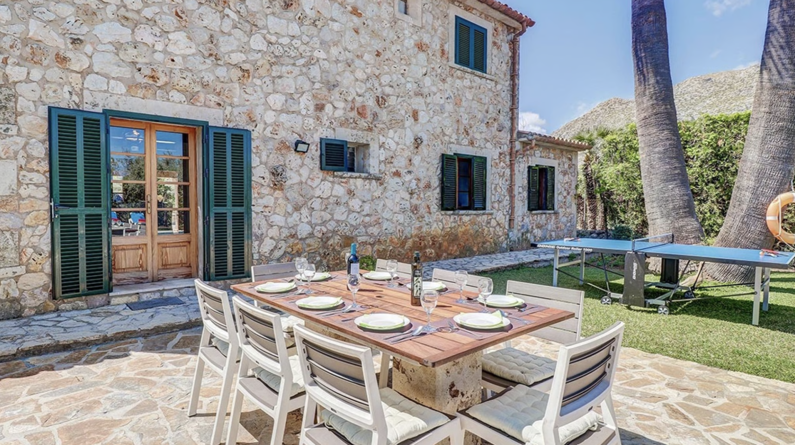 Another rental villa close to Pollensa, Villa Els Garbellons offers a private pool and simple lodgings with authentic Spanish decor. We love this villa for its brilliant location and access to Pollensa combined with the scenic countryside views. The master bedroom comes with its own bathtub and the spacious outdoor area has sun loungers and a foosball table.