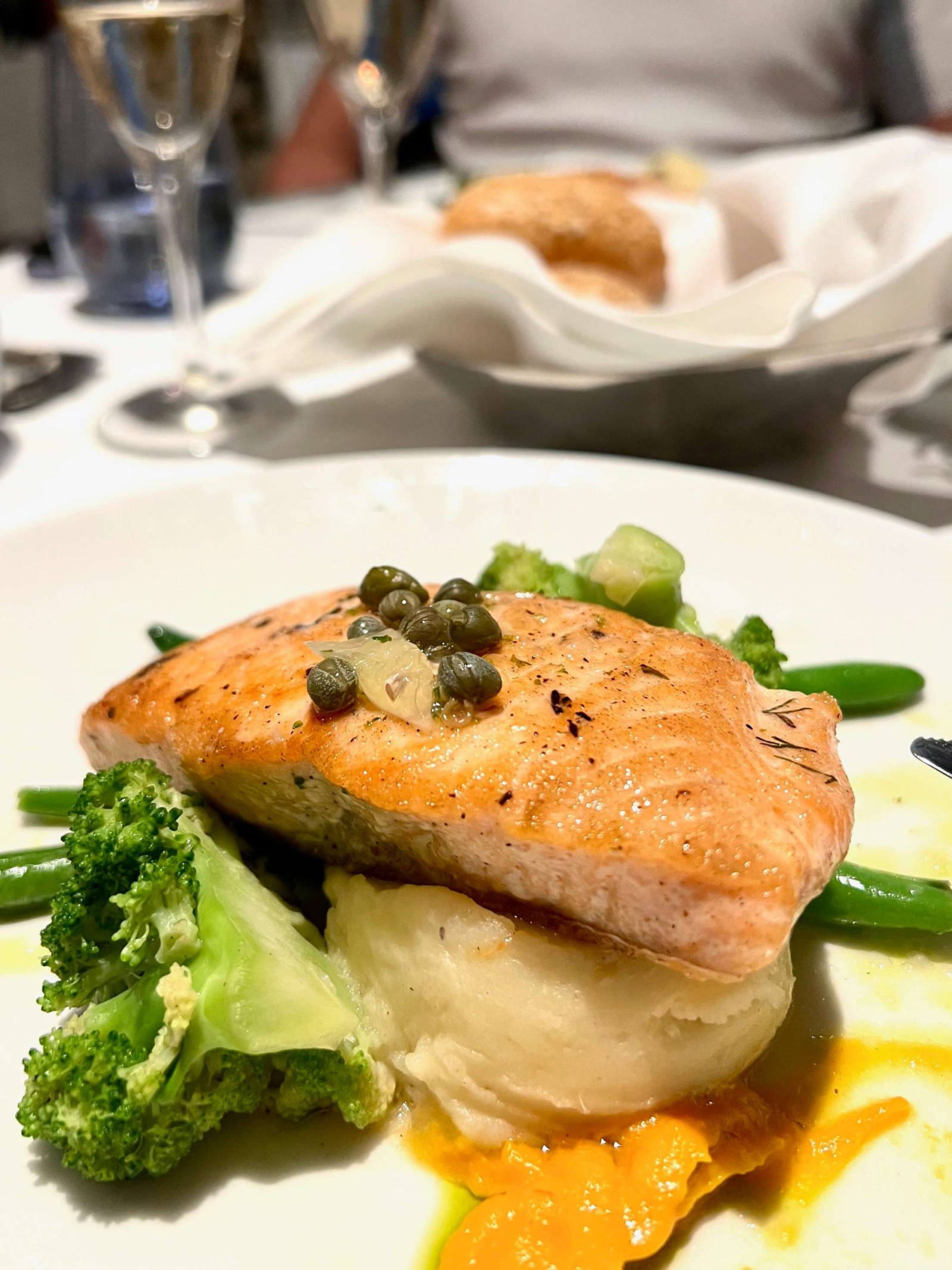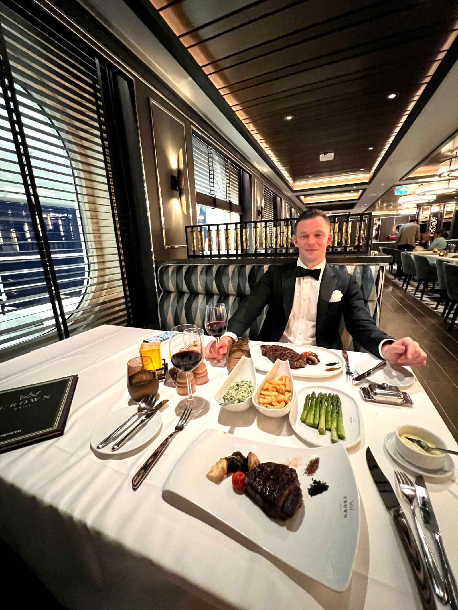 Crown Grill $39pp – Crown Grill offers guests another unique dining experience on board Sun Princess and is the ship’s signature steak house. Everything about this restaurant is elevated, from the unique menu of salts to accompany your steak (try the pink Himalayan), to the sumptuous menu of red wines designed to compliment your steak perfectly. If you’re not a steak lover, there are still plenty of options to enjoy at Crown Grill. Two members of our cruise party were vegetarian and they were provided with great suitable alternatives at Crown Grill.