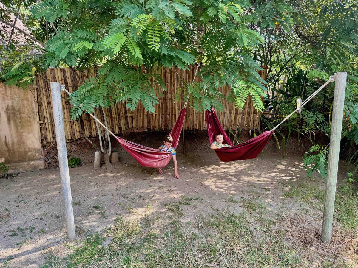 We stayed at Gili Asahan Eco Lodge in a cottage less than a minute’s walk from the shore. The boys had single beds on the mezzanine, and we slept downstairs. The cottage had a lovely outdoor bathroom and outdoor space to relax with a couple of hammocks for the boys to play in. The restaurant was right by the beach with amazing food, heavily influenced by the Italian owner.