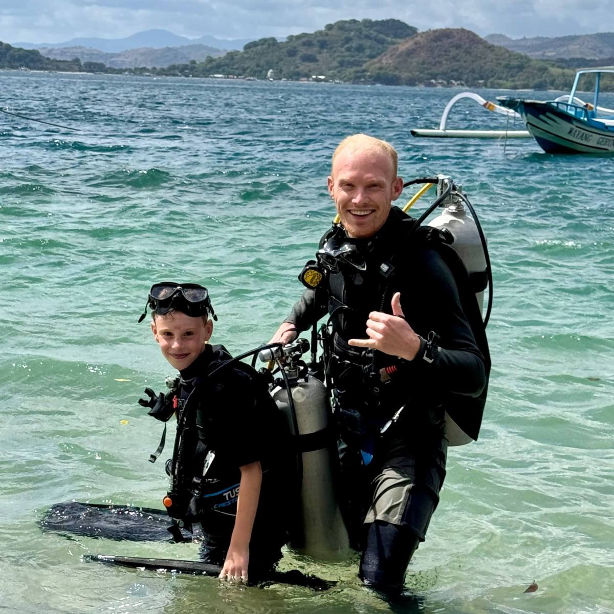 We spent 5 days here and it was great to live at a slower pace for a while. You could borrow snorkelling mask, SUPs and kayaks for free, so we got out into the water quite a bit. Indonesia does have a bit of a problem with plastic being washed up onto the beaches however, the Eco Lodge staff made sure that wasn’t an issue on their beaches. The staff at the Eco Lodge were brilliant and so friendly with the children, so this one is a really great recommendation for Indonesia with kids. There is a dive centre on the island, so I did a couple of boat dives and saw sharks, turtles, eagle rays and loads of amazing fish and coral. Benji, aged 8, also did an introductory dive from the shore and loved it, so I can’t wait until he’s older and can be my scuba diving buddy!