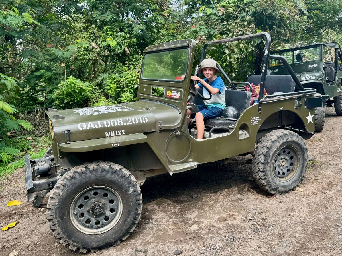 I’d definitely recommend doing the full tour to the top of the temple to see the 72 stupas (bell shaped structures each housing a Buddha statue). Prambanan is equally as interesting architecture, although not quite as impressive. It’s the second largest Hindu temple in SE Asia after Angkor Wat. We hired a driver for the day (organised by the Airbnb owners) to take us to both temples with a lunch stop at a local Warung (local streetside restaurant). We also did a Mount Merapi jeep tour. Unfortunately, it was a cloudy day, so we didn’t get to see the volcano, but the jeep tour was fun, and ended with the jeeps driving through water and getting soaked, which obviously the kids loved! Yogyakarta is also the base for those wanting to visit the Mount Bromo volcano, although this involves leaving about 3am to get there for sunrise so we decided against it with kids!