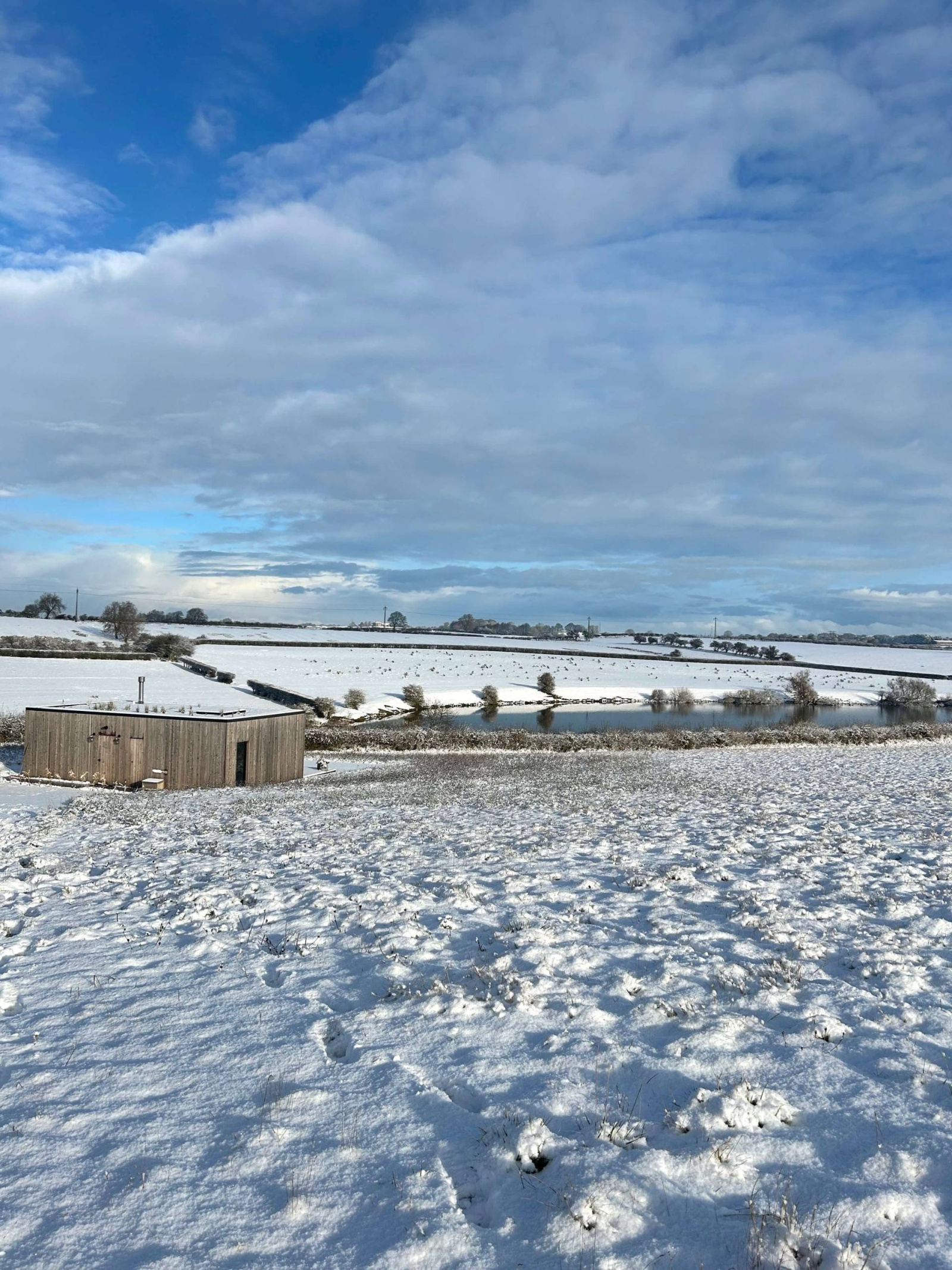 At The Nest guests can check in to one of 5 nature-inspired, elevated treehouses and luxury lodges in County Durham, including Kingfisher, Sandpiper, Nuthatch, Wren and The Covey. Our night at The Nest was spent in Sandpiper, one of the beautiful lakeside lodges and certainly were not disappointed. Complete with a delightful fire, luxury interior, steaming hot tub, beautiful lakeside views, and a perfectly- timed snowstorm, Sandpiper was everything we could have wished for from a cosy winter getaway. Read on for the lowdown on our full experience.