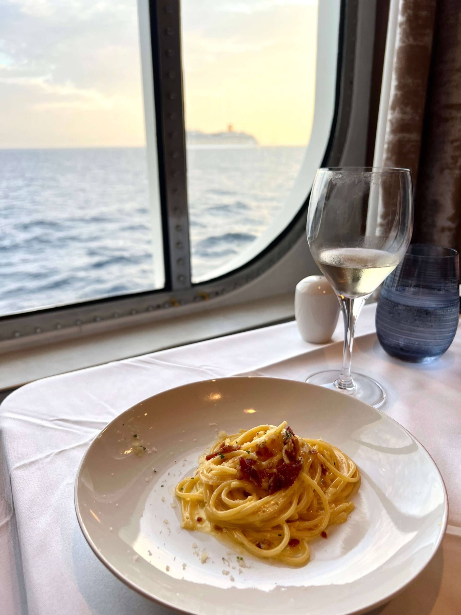 Both the food and service in here was exceptional and one night we did manage to get a prime spot close to the giant wake view windows (reserving a table in advance will increase your chances of this). This made for such a special and memorable dining experience which ended up being one of my favourites of the whole cruise. You can enjoy a la carte dinners here (of up to four courses) at absolutely no additional price. The menu offers traditional dining which is different every night, but many of the โPrincess Favouritesโ menu items (such as the spaghetti alfredo) are available throughout the week.