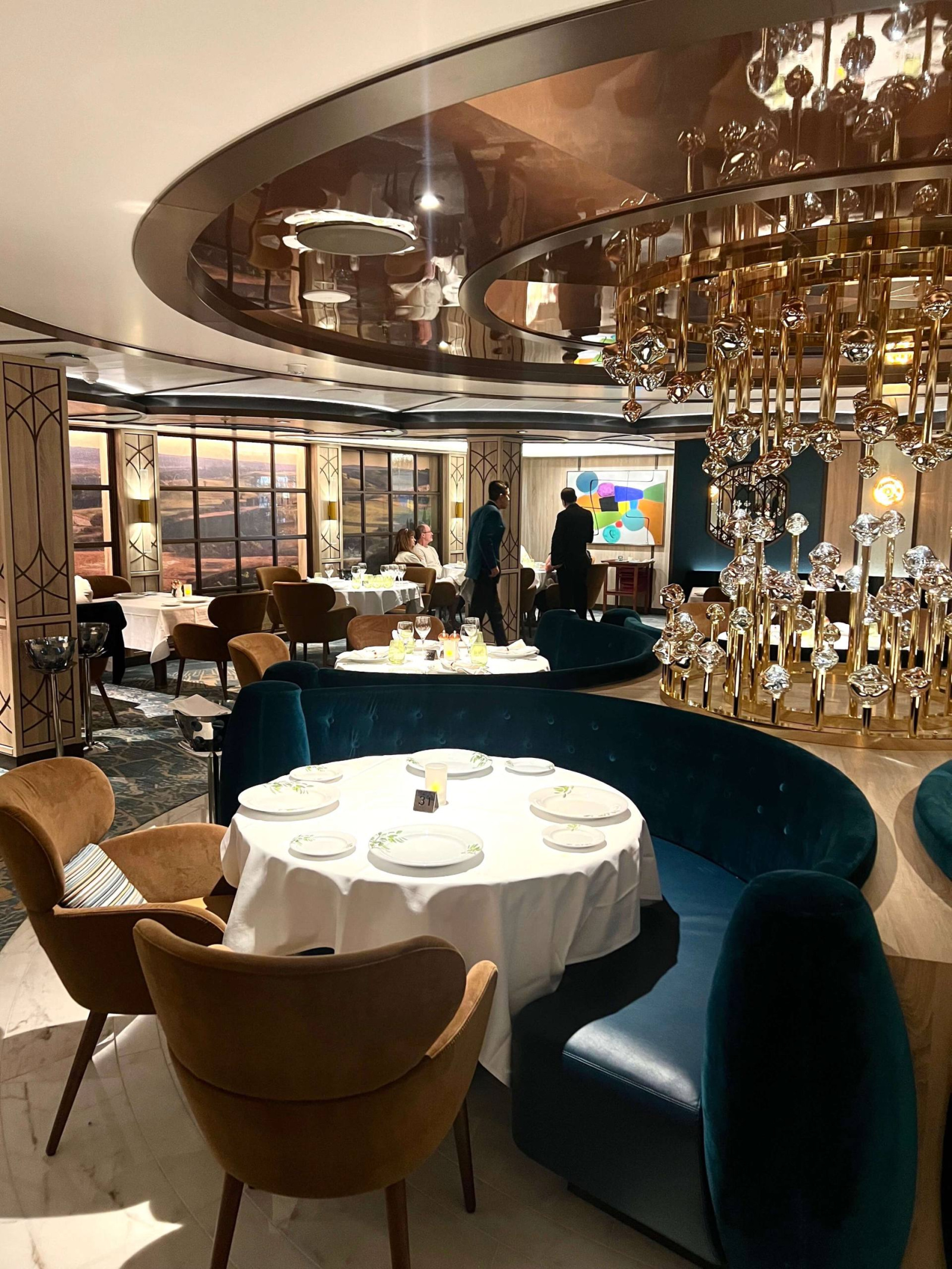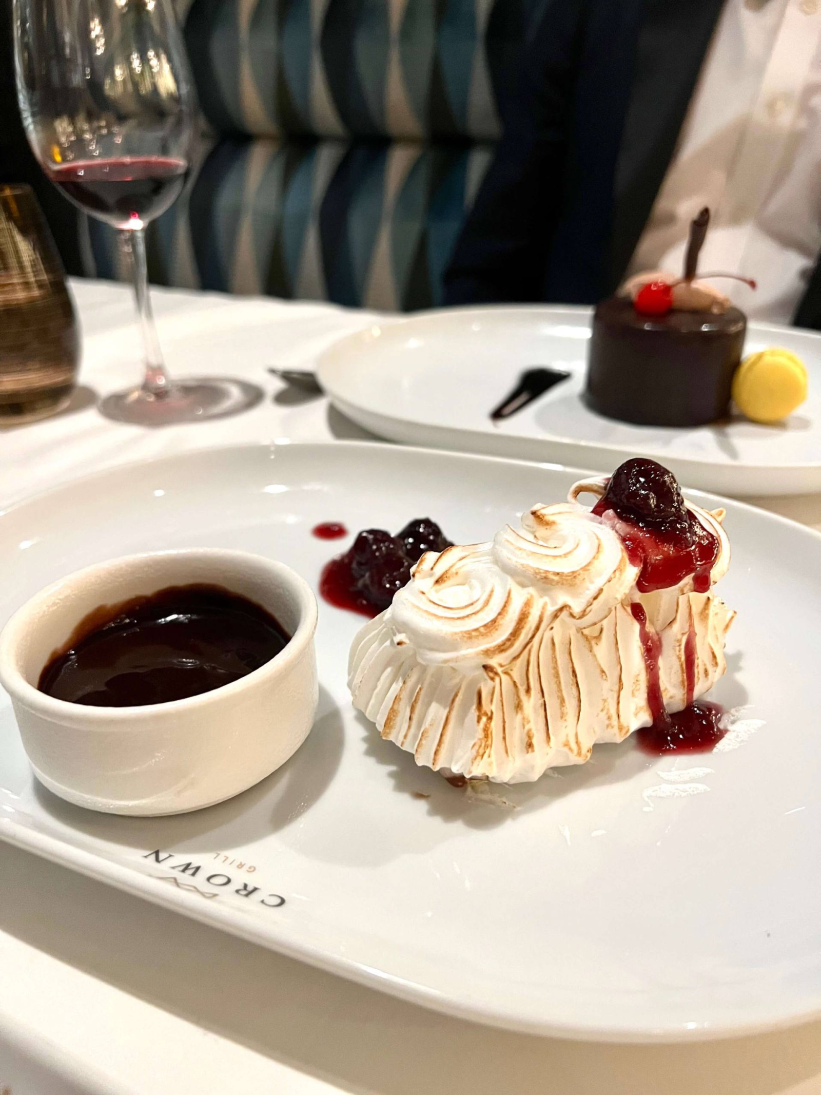 We dined at Crown Grill on the first formal night of the cruise, which turned out to be the perfect choice. This restaurant oozes with 1920โs glamour, so we felt right at home in our black tie dress code. Crown Grill is best known for its prime cuts of steak and sumptuous sides. My prime cut fillet steak was cooked to perfection, but other highlights on this menu I found were the black and blue French onion soup, the truffle fries, the crab cakes and the baked alaska for dessert. We also had a sommelier to advise on the best wines for our menu choices, which was a really elevated touch.
