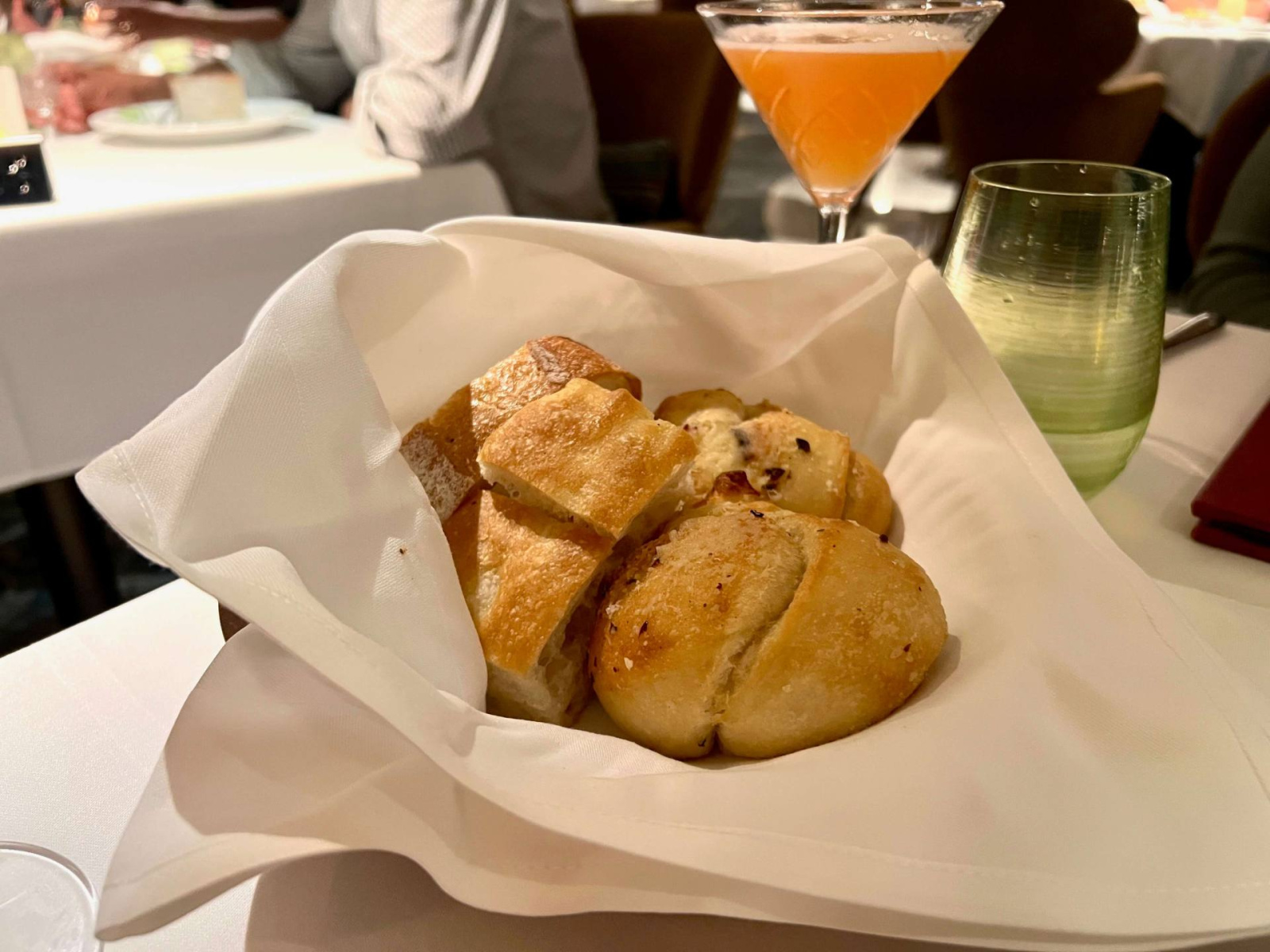 Firstly, I will say that Horizons is one of the most spectacular dining spaces on the ship, especially if you can get a table near the vast floor-to-ceiling window. The window spans all 3 floors of the restaurant and gives the most incredible wake views of the ship – imagine dining at sea with a wake view sunset as your backdrop. The location and elegance of this restaurant set the tone for memorable dining experiences, and the best thing is that you can dine here every night inclusive of The Princess Standard cruise far as it’s the main dining room on the ship.