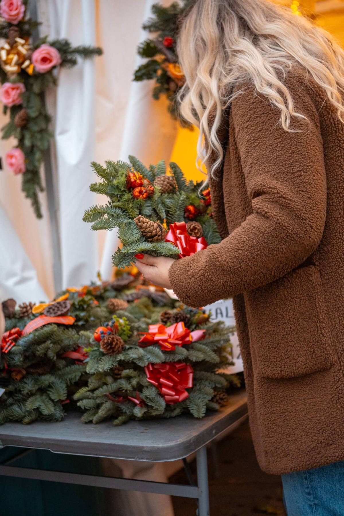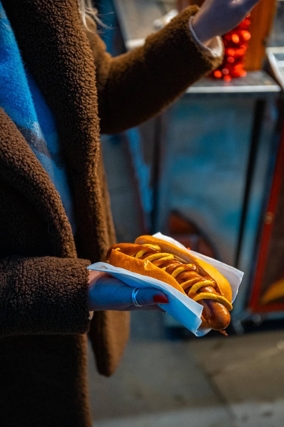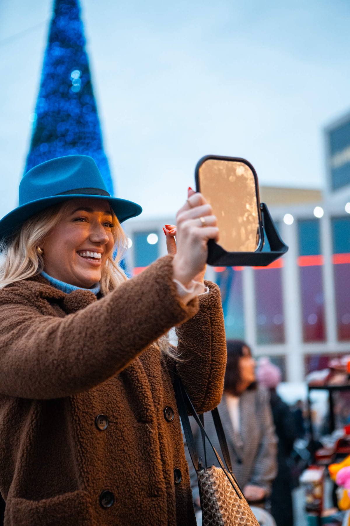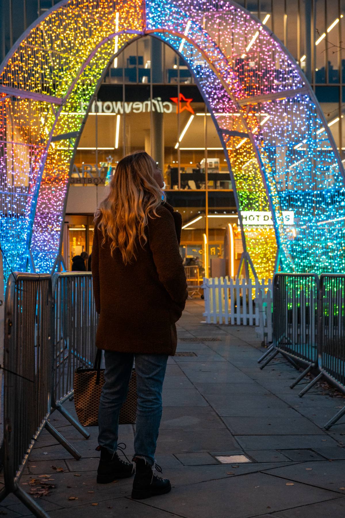 Surrounding the stalls were a beautiful collection of festive light installations including glittering archways and trees which provided the perfect backdrops for festive photos. Also within the market set up was a main stage with performances from live singers – I found this really enhanced the experience and added to the Christmas atmosphere.