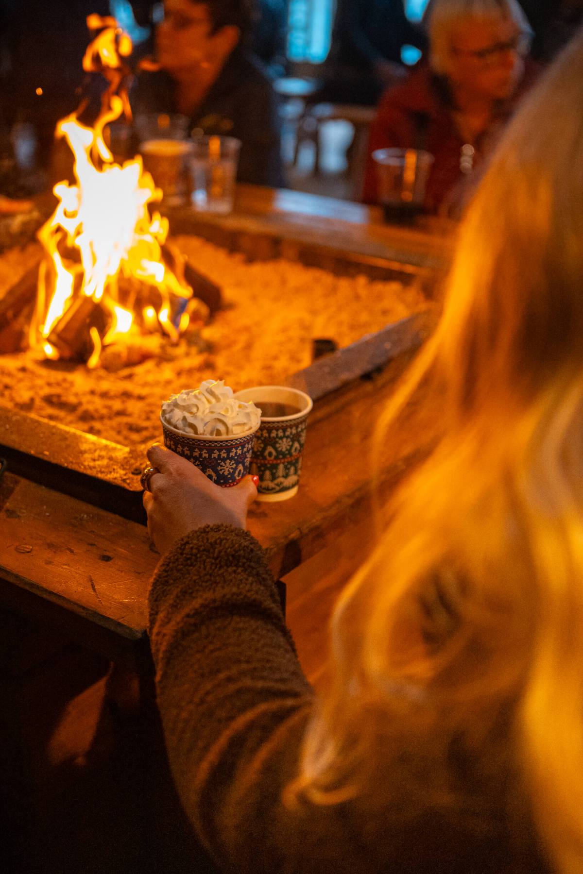 - Sitting by the open fire pit in the Tipi with a mulled wine