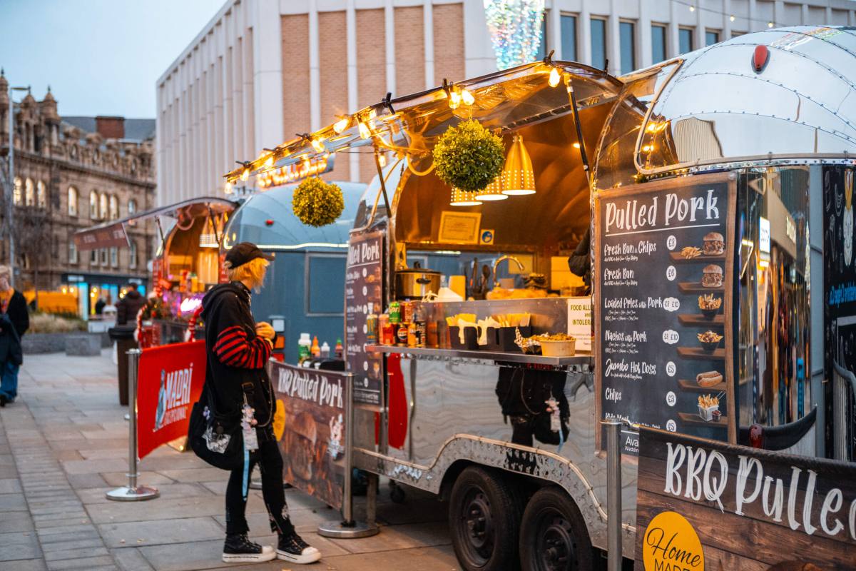 This year, the Barnsley Christmas Market took place on The Glass Works Square, in the very heart of Barnsley town centre. During my visit I discovered a combination of food stalls and festive retail stalls, offering a unique foodie and shopping experience that helped visitors to shop local and support South-Yorkshire businesses. There was an amazing range of world-food on offer and you could try everything from bao buns and gyozas to Sicilian cannoli and Bavarian sausages. Some of the retail vendors also allowed you to taste samples of their product such as cheeses and hot sauces.